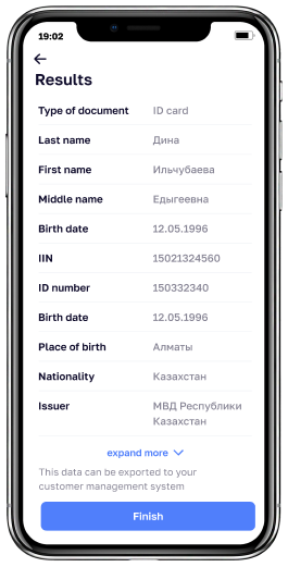 Добавьте в приложение, сайт или терминал мобильный сканер документов. Мгновенное распознавание и экспорт данных из национальных ID-карт, паспортов и других документов.Инновационная технология OCR (optical character recognition) на базе AI позволяет:- Мгновенно и точно распознавать данные